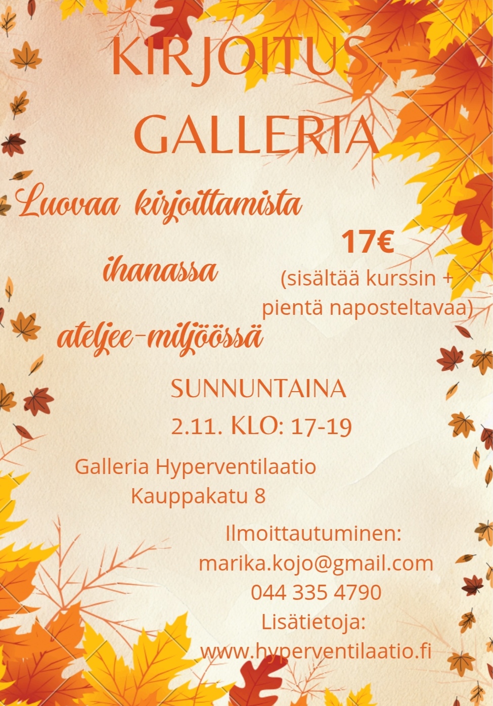 !! VOIT TILATA MINUT LUENNOIMAAN KUOLEMASTA TAI PITÄMÄÄN SANATAIDEPAJOJA !!