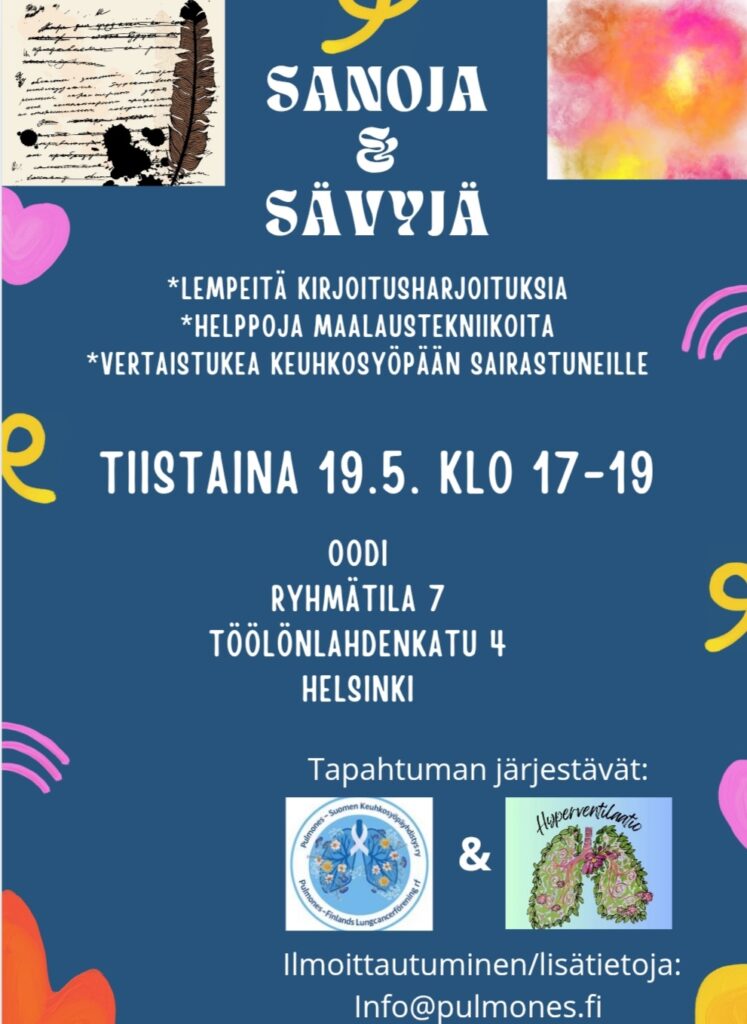 Sanoja & Sävyjä – voimaannuttava vertaistuki-ilta keuhkosyöpään sairastuneille.